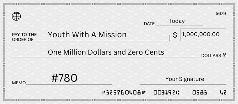 Make checks payable to YWAM and don’t put my name anywhere on the check, rather put #780 (My Designation Code) in the memo. You can include a separate note saying it is for Jacob Frenzen if so desired.